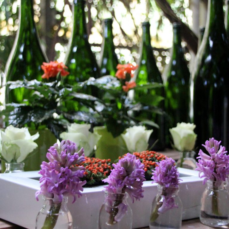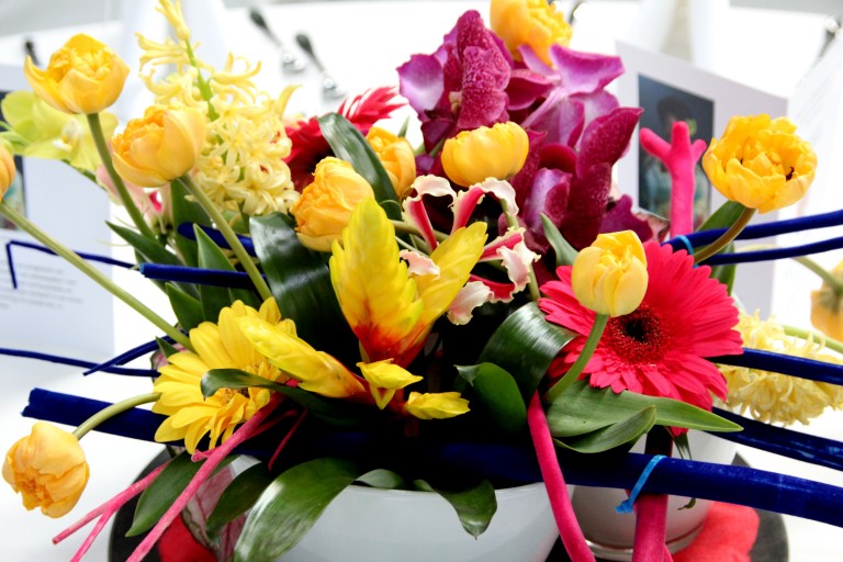 Onder het genot van een welkomsdrankje was er een gezellig en informeel samen zijn, waarna Gerda haar gasten uitnodigde om aan tafel te aan. De prachtige bloemstukken op de tafels, gemaakt door Frits Hoogers, zorgden voor de finishing touch.